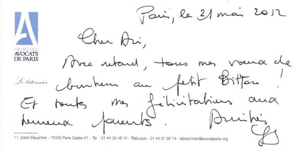 A ce moment précis – allez savoir pourquoi – le Président du MAC se remémora ce petit mot affectueux que Christiane lui avait laissé au vestiaire du Conseil, quelques semaines après la naissance du petit dernier ….